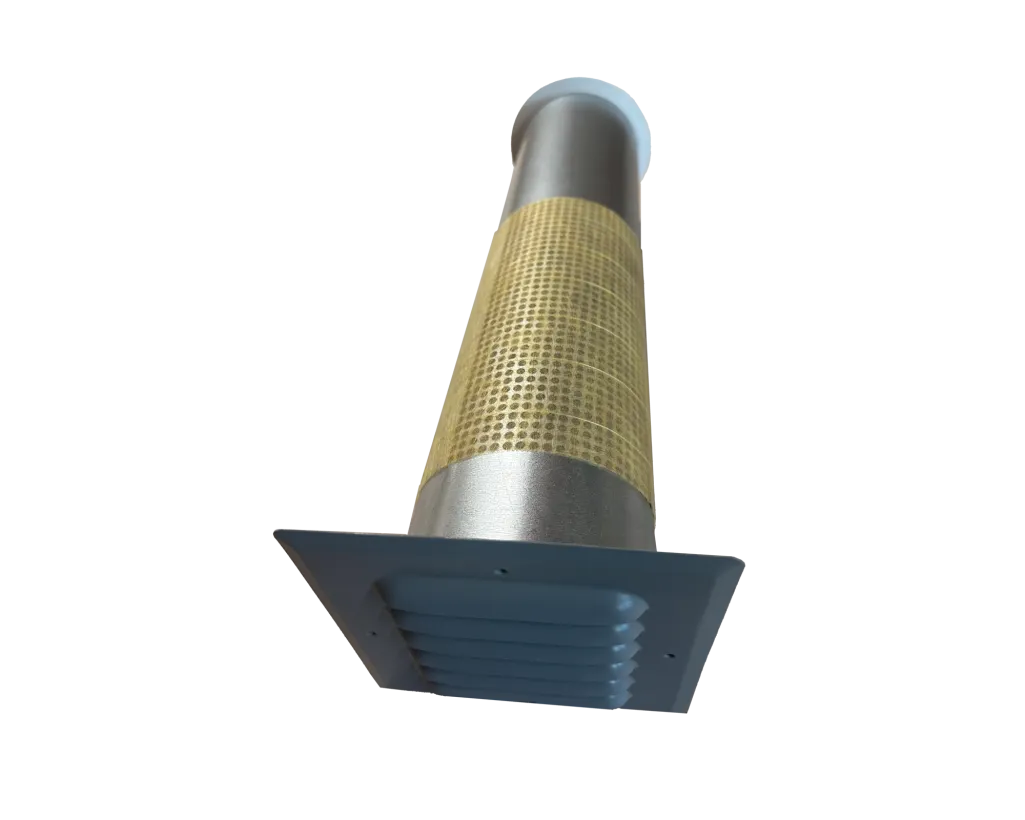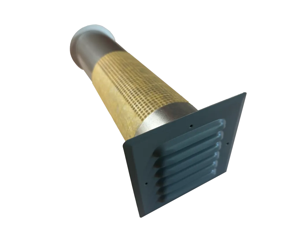 ● ● ● C3-kanal Cirkulär kanal Ø100 mm av perforerad galvaniserad plåt med ytterväggsgaller och stos. Kontakta oss