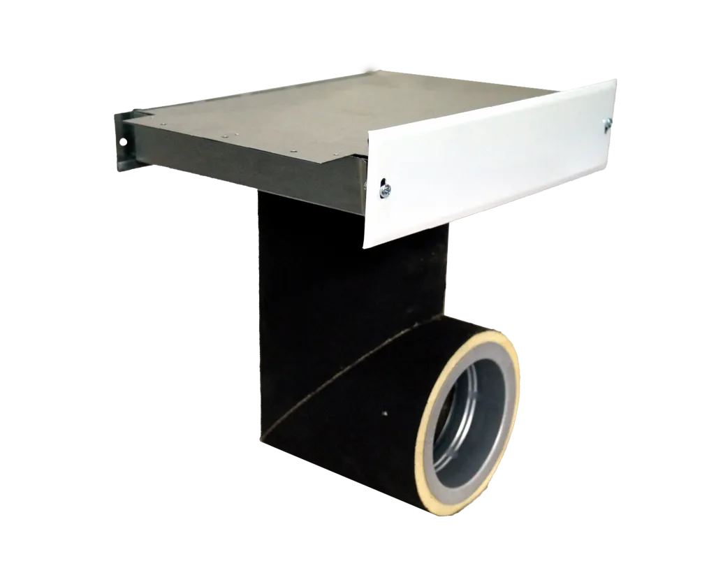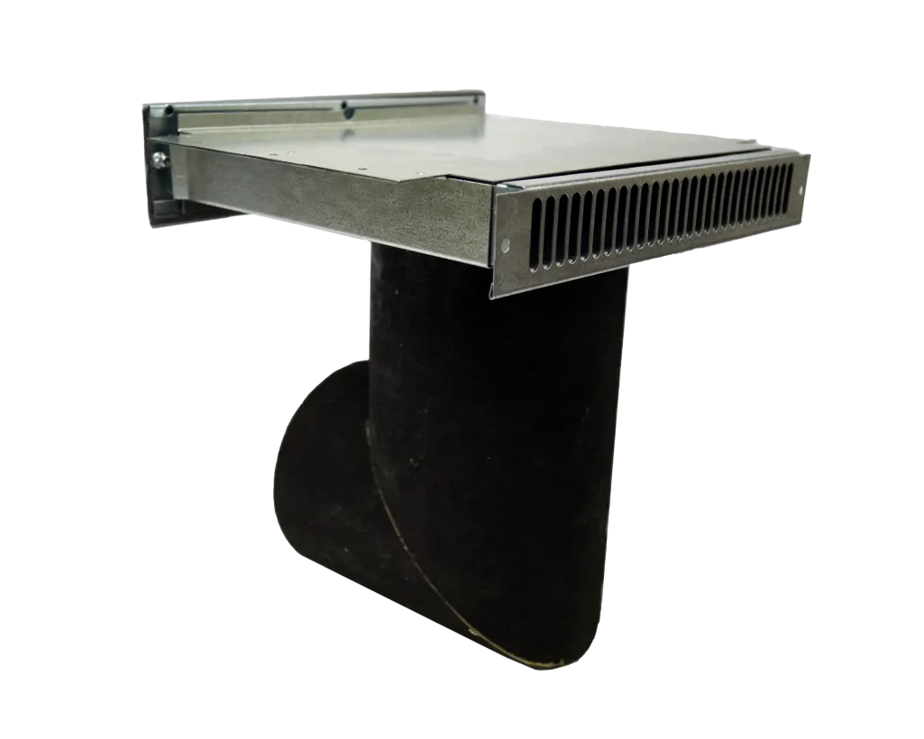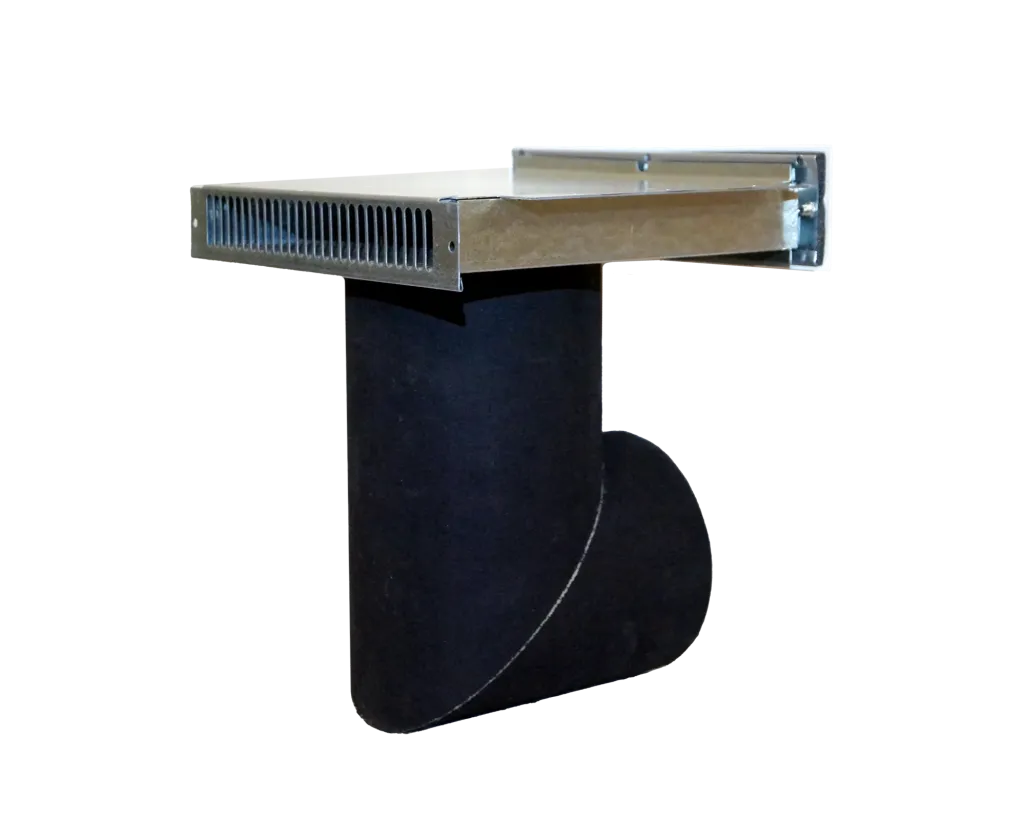 Ljudreducerande kanal av mineralull, invändigt och utvändigt belagd med Bindex, med renslucka och integrerat galler för dolt luftintag.