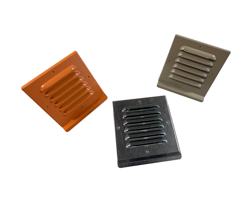 Våra fasadgaller är tillverkade av galvaniserad plåt. Gallren finns i olika utförande – för bland annat puts- trä- eller tegelstensfasad och kan beställas i lackerat utförande. För utförligare information om våra ytterväggsgaller, se produktdokumenten.